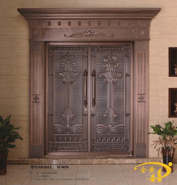 友情提示:感謝您瀏覽我們的純銅別墅門產品,型號是M-9017、私人定制價格受客戶所選款式及門頭門柱工藝等多方面因素影響,所以請直接電話聯系公司客服,客服會根據您的要求核算出性價比高的報價給到您。我們是專業的純銅別墅門廠家,門面可采用洛陽紫銅0.8厚度銅板或者鋼銅。如果您想詳細了解純銅別墅門價格,請通過網站留言或者直接撥打電話:13605899963與我們取得聯系索要純銅別墅門批發價格表!